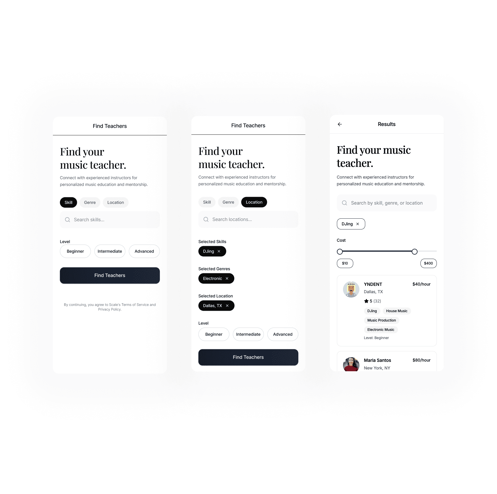 A music education marketplace that helps students find the right teachers, book learning experiences, and track progress in one place.