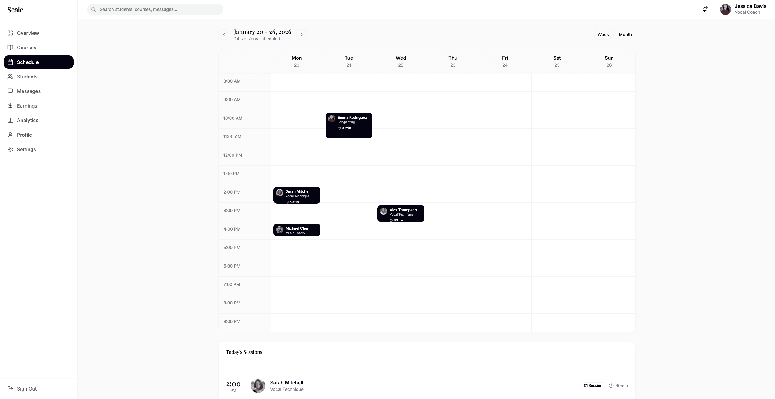 We've created an entire desktop version specifically for teachers to manage students, view business analytics, manage payments, schedule sessions, message students, and edit discoverability.