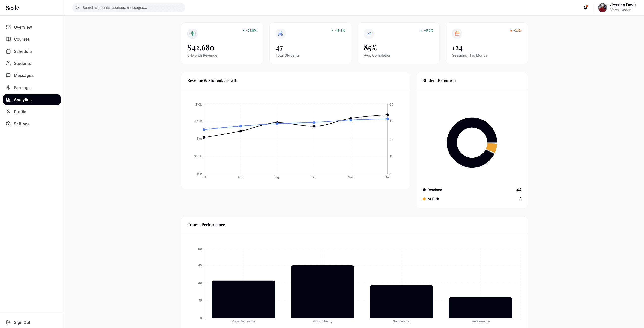 Scale generates revenue through transaction based fees on bookings and course enrollments, with optional educator subscriptions for advanced tools.